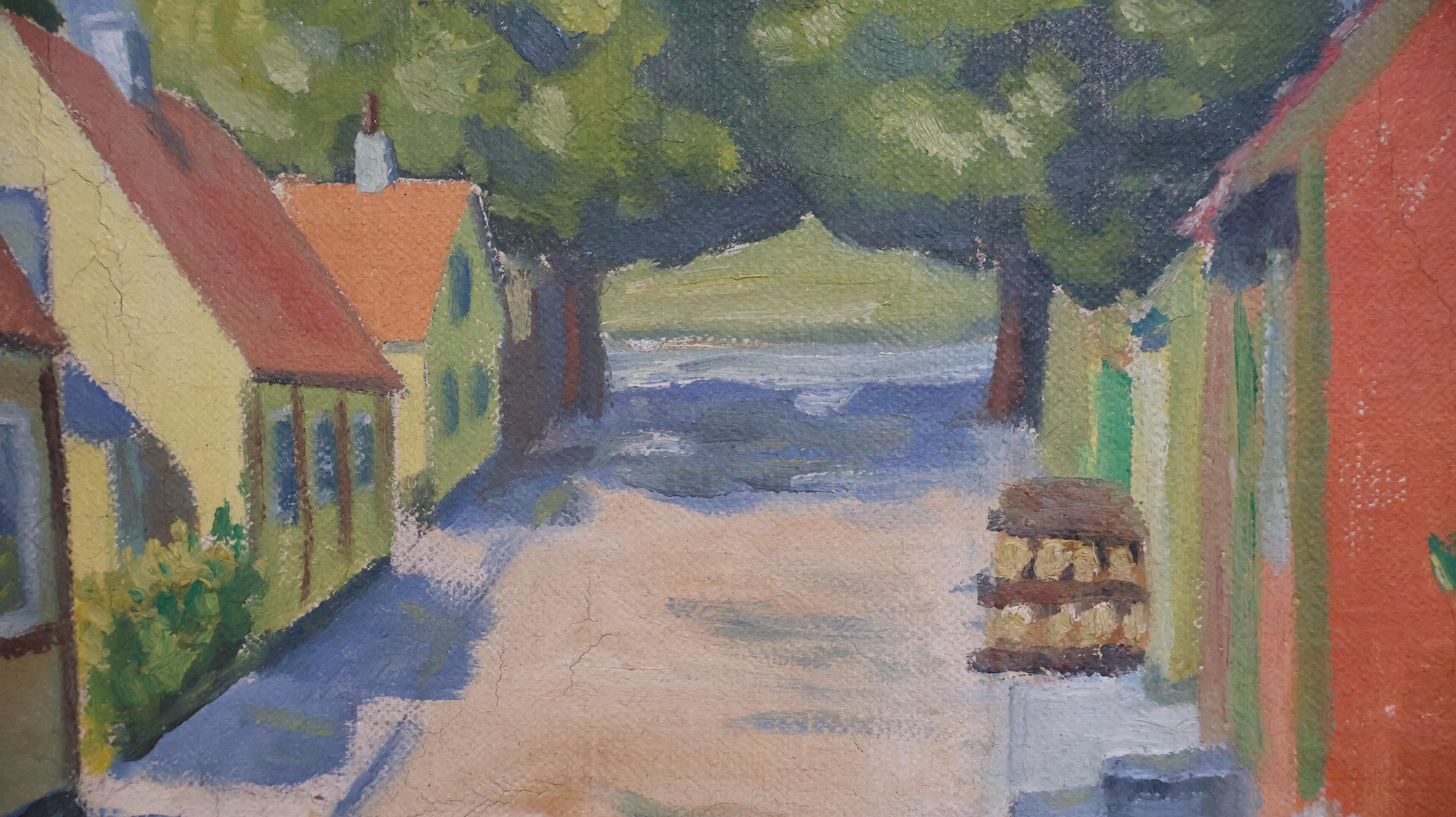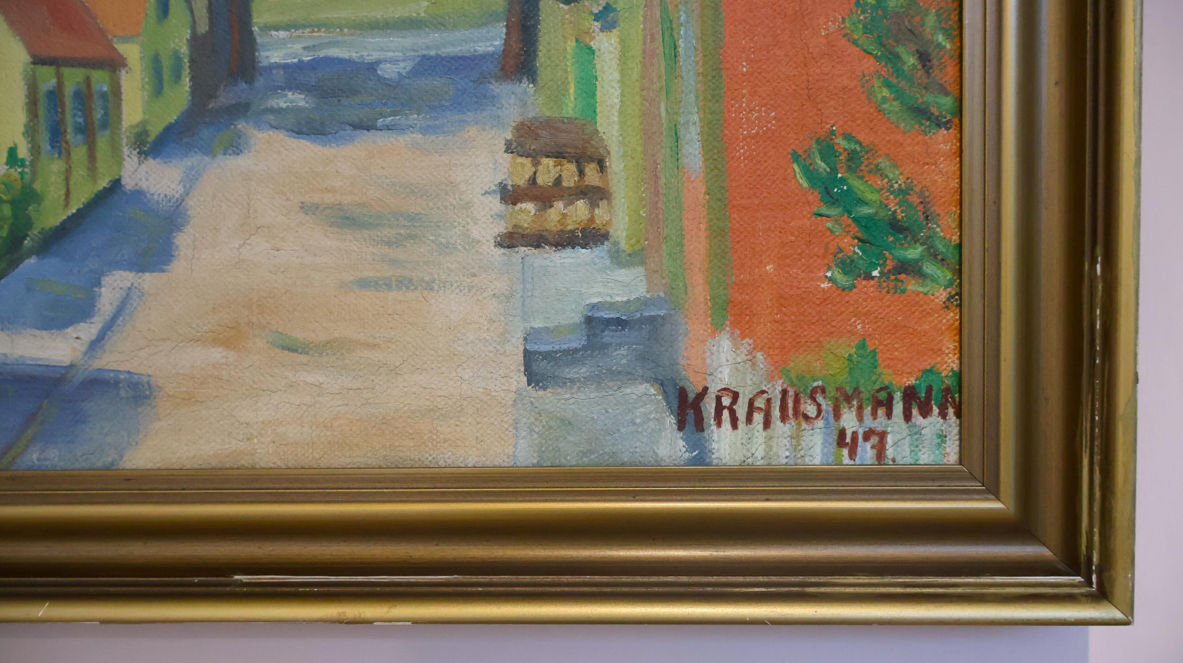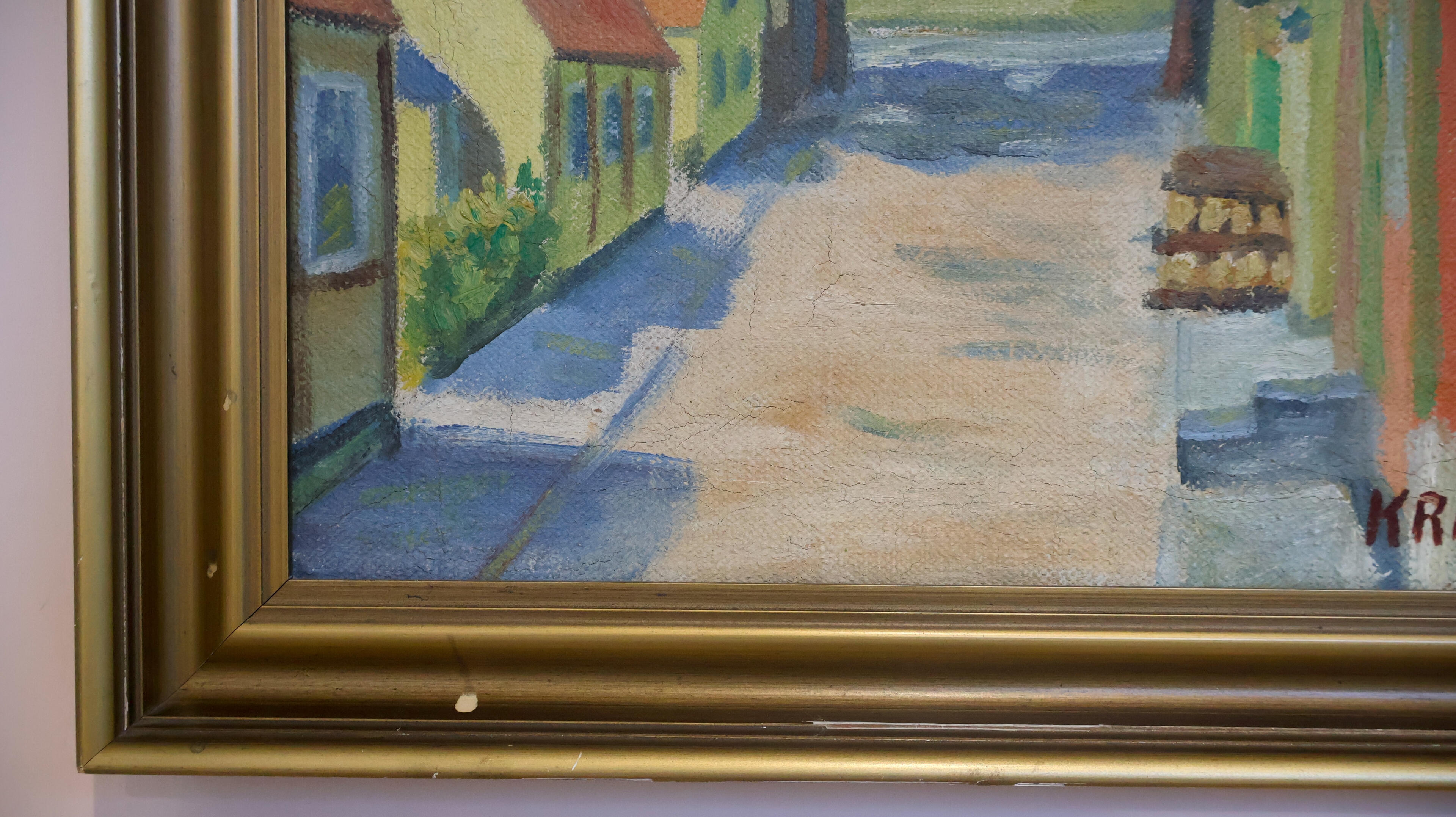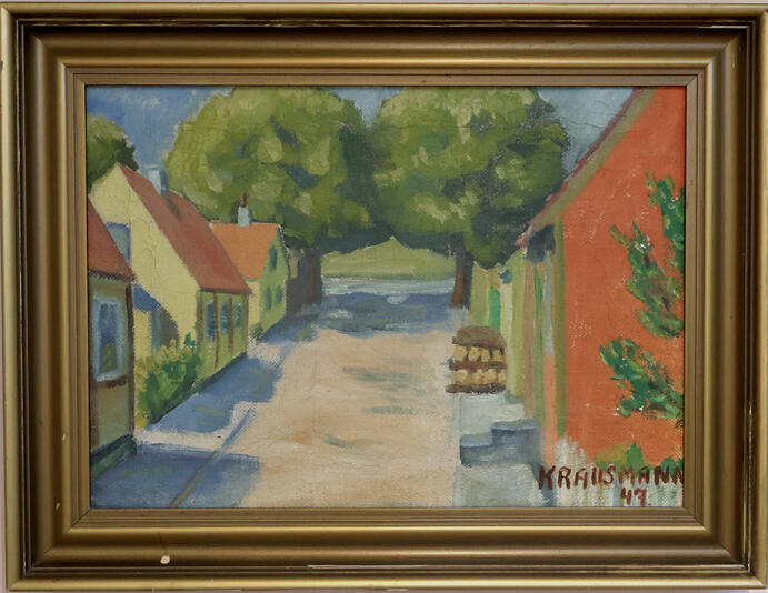Medium Original Oil on Canvas Danish Street Scene Painting - Signed Krausmann 47