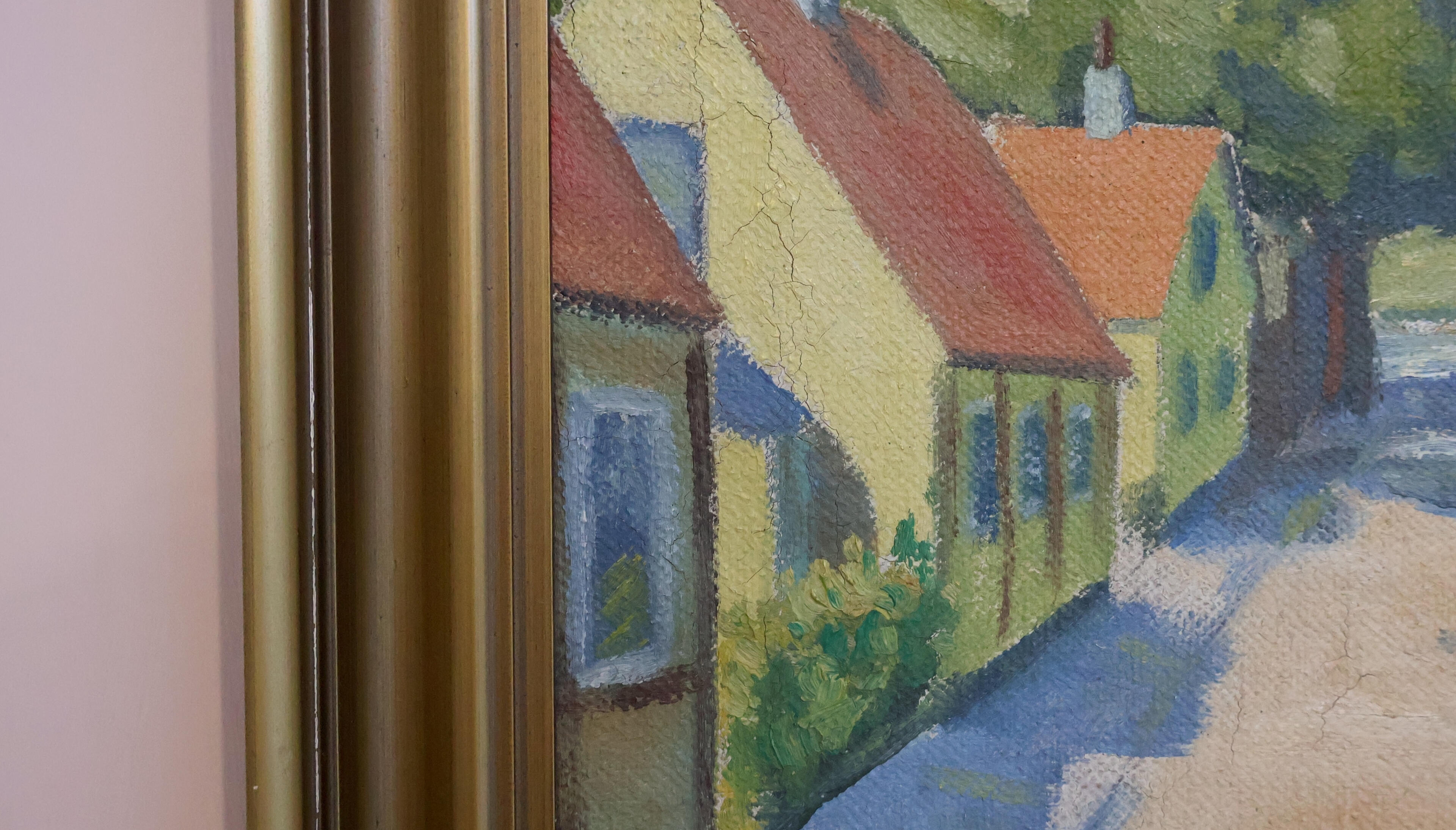 Condition: Very good vintage condition with minor age-related wear; painting securely seated within its frame