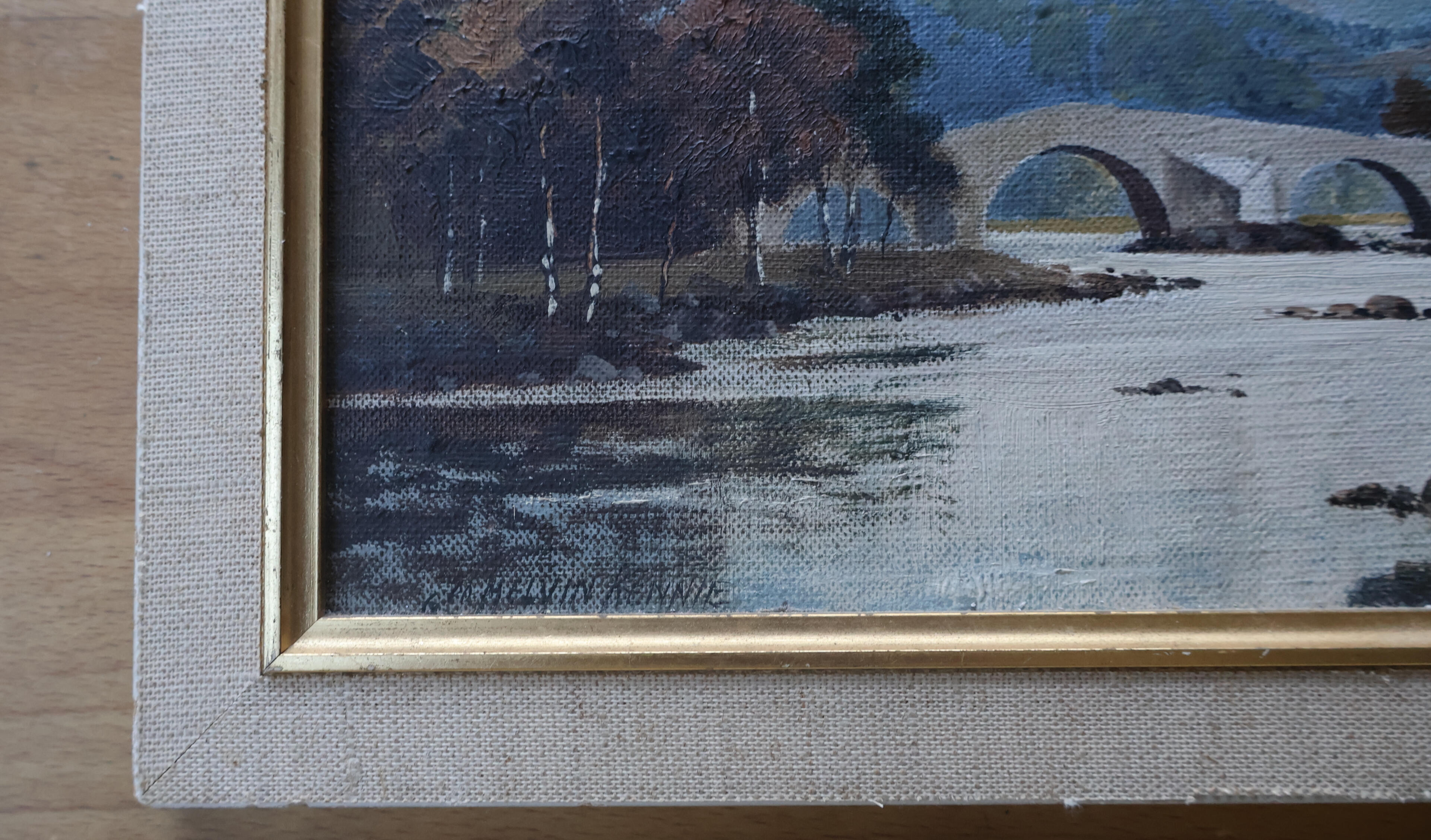 Small Original Oil on Board Painting The Old Brig o' Dee - Signed Geo Melvin Rennie